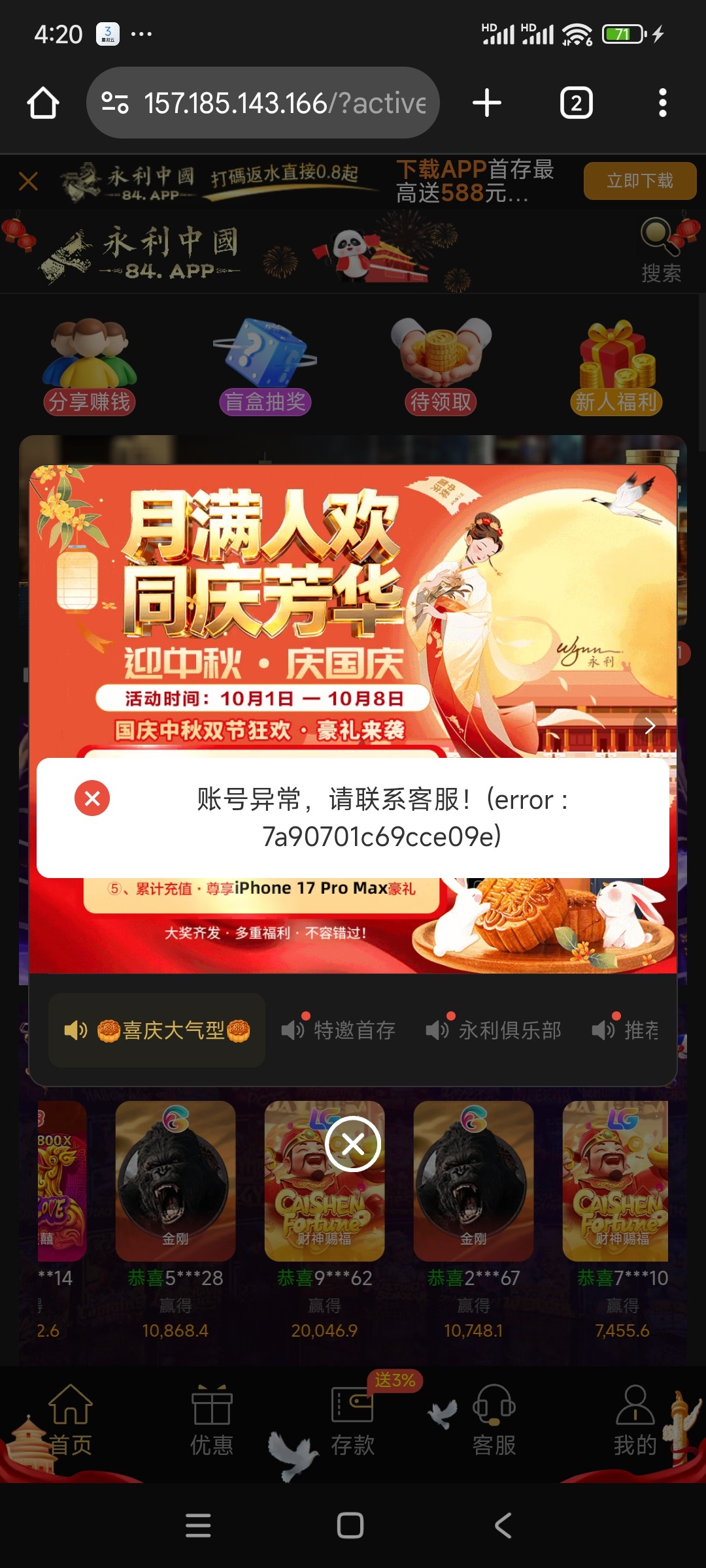 遭遇一样,充60打到130,提现直接封号