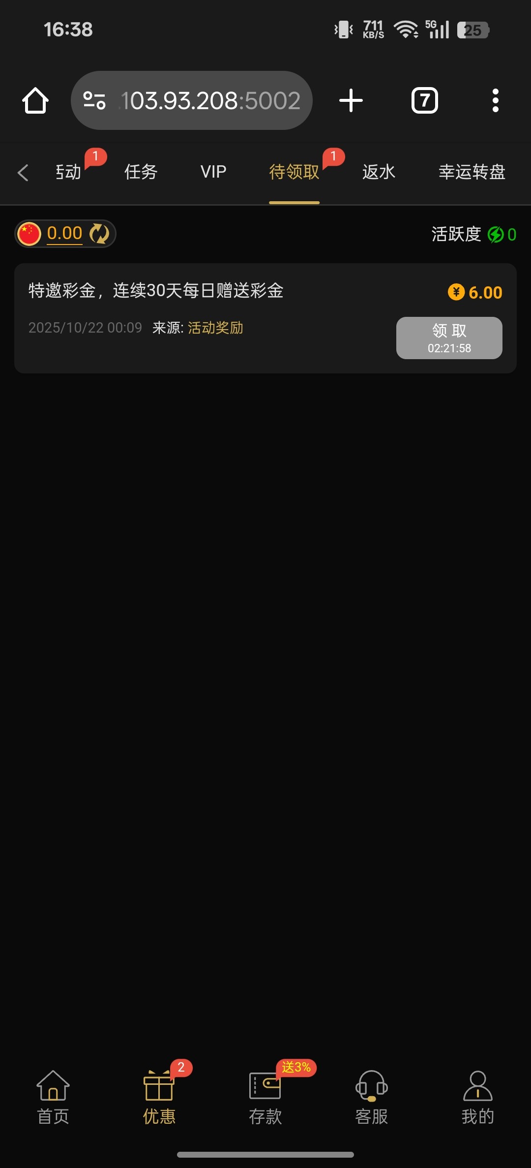 注册绑定手机号发账号给客服登记领取6元特邀,彩金第二天7点领取