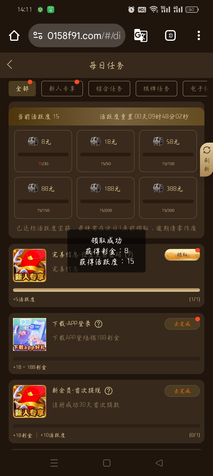 注册绑定领8绑定了过几分钟刷新 在每日任务里面 链接0158.BET