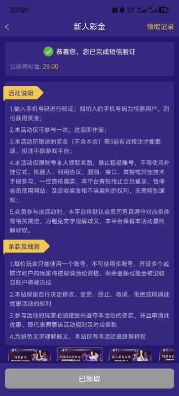 这个我早领到了,不过要充值才可以玩,去他喵的